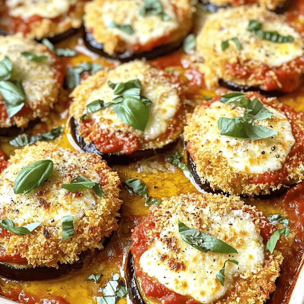 ![- 2 große Auberginen - 1 Teelöffel Salz - 1 Tasse Allzweckmehl - 2 große Eier Auberginen sind die Stars in diesem Gericht. Sie geben Geschmack und Textur. Salz hilft, die Bitterkeit zu reduzieren. Es zieht auch die Feuchtigkeit aus den Auberginen. Mehl und Eier sind wichtig für die Panade. Sie sorgen für eine knusprige Schicht. - 2 Tassen Marinara-Soße - 2 Tassen geriebener Mozzarella-Käse - 1 Tasse geriebener Parmesan-Käse Käse ist das Herzstück des Auflaufs. Mozzarella schmilzt gut und gibt eine cremige Textur. Parmesan fügt einen kräftigen Geschmack hinzu. Marinara-Soße bringt alles zusammen. Sie ist die Basis, die Feuchtigkeit und Aromen liefert. - 2 Esslöffel frisches Basilikum - 1 Teelöffel Knoblauchpulver - 1 Teelöffel italienische Gewürzmischung - Olivenöl Kräuter und Gewürze machen den Unterschied. Frisches Basilikum bringt Frische. Knoblauchpulver und italienische Gewürzmischung geben Tiefe. Olivenöl hilft beim Braten und gibt einen tollen Geschmack. Diese Zutaten machen deinen Auberginen Parmesan Auflauf zu einem Fest! Für das vollständige Rezept, schau dir den Abschnitt über die Zubereitung an. - Salzen der Auberginen Beginne mit den Auberginen. Schneide sie in 1/2 Zoll dicke Scheiben. Lege sie auf ein Küchentuch. Bestreue sie gleichmäßig mit Salz. Lass sie für etwa 30 Minuten ruhen. Das Salz zieht die Feuchtigkeit aus den Auberginen. Es hilft auch, Bitterkeit zu reduzieren. - Abspülen und Trocknen Nach 30 Minuten spülst du die Auberginen unter kaltem Wasser ab. Tupfe sie dann mit Küchenpapier trocken. Dies entfernt das überschüssige Salz. Deine Auberginen sind jetzt bereit zum Panieren. - Erstellung der Panierstation Richte deine Panierstation ein. Nimm drei Schüsseln. Fülle die erste mit Mehl. Die zweite enthält die verquirlten Eier. In die dritte gibst du das Paniermehl. Mische das Paniermehl mit Knoblauchpulver und italienischer Gewürzmischung. - Paniervorgang Tauche jede Auberginenscheibe zuerst ins Mehl. Schüttle das überschüssige Mehl ab. Tauche sie dann in das Ei. Danach geht es ins Paniermehl. Drücke sanft, damit die Panade gut haftet. - Braten der panierten Auberginen Erhitze Olivenöl in einer großen Pfanne bei mittlerer Hitze. Brate die panierten Auberginenscheiben in Chargen. Jede Seite sollte etwa 4-5 Minuten goldbraun sein. Lege die gebratenen Scheiben auf Küchenpapier. So tropfst du überschüssiges Öl ab. - Schichten der Zutaten Nimm eine 9x13 Zoll große Auflaufform. Verteile eine dünne Schicht Marinara-Soße auf den Boden. Schichte die Hälfte der gebratenen Auberginen darauf. Füge eine Schicht Marinara-Soße hinzu. Bestreue sie mit Mozzarella und Parmesan. Wiederhole die Schichten. Beende mit einer Schicht Mozzarella und Parmesan. - Backen im Ofen Decke die Form mit Aluminiumfolie ab. Backe sie im vorgeheizten Ofen bei 190°C für 25 Minuten. Entferne dann die Folie. Backe für weitere 15-20 Minuten, bis der Käse sprudelnd und goldbraun ist. Lass den Auflauf nach dem Backen etwa 10 Minuten ruhen. Dann schneide ihn in Stücke. Verwende frisches Basilikum zur Garnitur. Das ist die Schritt-für-Schritt Anleitung für den Auberginen Parmesan Auflauf. Du kannst das vollständige Rezept in der [Full Recipe] finden. Um die besten Auberginen zu wählen, suchen Sie nach glatten, glänzenden Schalen. Vermeiden Sie fleckige oder schrumpelige Früchte. Fühlen Sie die Aubergine, sie sollte fest sein. Ein gutes Gewicht zeigt, dass sie frisch ist. Vorbereitung ist wichtig. Schneiden Sie die Auberginen in gleichmäßige Scheiben. Ich empfehle, sie etwa 30 Minuten mit Salz zu bestreuen. Das Salz entzieht die Feuchtigkeit und macht die Auberginen weniger bitter. Nach dem Salzen spülen Sie sie unter kaltem Wasser ab und trocknen sie gut mit einem Küchentuch. Für vegetarische Alternativen verwenden Sie andere Gemüsesorten. Zucchini oder Pilze sind tolle Optionen. Für eine glutenfreie Version ersetzen Sie das Mehl und das Paniermehl durch glutenfreie Sorten. Diese Anpassungen machen das Gericht vielseitig und lecker. Servieren Sie den Auberginen Parmesan Auflauf mit einem frischen Salat. Ein einfacher grüner Salat passt gut. Für Getränke empfehle ich einen leichten Rotwein oder Sprudelwasser. Zum Anrichten legen Sie frisches Basilikum obenauf. Das sieht schön aus und gibt einen frischen Geschmack. Für die vollständigen Zutaten und die Zubereitung schauen Sie sich das Full Recipe an. {{image_4}} - Aufbewahrung im Kühlschrank: Lagern Sie den Auberginen Parmesan Auflauf in einem luftdichten Behälter. So bleibt er frisch. Stellen Sie sicher, dass der Auflauf abgekühlt ist, bevor Sie ihn abdecken. - Haltbarkeit des Auflaufs: Im Kühlschrank hält sich der Auflauf etwa 3 bis 5 Tage. Prüfen Sie immer auf Anzeichen von Verderb, bevor Sie ihn essen. - Einfrieren des Auflaufs: Wenn Sie den Auflauf länger aufbewahren möchten, können Sie ihn einfrieren. Lassen Sie ihn vollständig abkühlen. Teilen Sie ihn in Portionen und legen Sie ihn in Gefrierbeutel. Drücken Sie die Luft heraus, um Gefrierbrand zu vermeiden. - Aufwärmen nach dem Einfrieren: Zum Aufwärmen tauen Sie den Auflauf über Nacht im Kühlschrank auf. Backen Sie ihn dann bei 180 °C (350 °F) für etwa 25 bis 30 Minuten, bis er durchgehend heiß ist. Achten Sie darauf, ihn gegebenenfalls mit Folie abzudecken, um ein Austrocknen zu verhindern. Für das Rezept besuchen Sie den [Full Recipe] Link. Jede Portion Auberginen Parmesan Auflauf hat etwa 350 Kalorien. Dies ist eine gute Menge für ein Hauptgericht. Die Makronährstoffe sind wie folgt: - Fett: 20 g - Kohlenhydrate: 30 g - Protein: 15 g Diese Kombination macht das Gericht nahrhaft und sättigend. Es ist eine ausgewogene Wahl für eine Mahlzeit. Auberginen sind reich an Nährstoffen. Sie bieten viele Vorteile: - Sie enthalten viele Ballaststoffe. - Sie sind eine gute Quelle für Antioxidantien. - Sie helfen, den Blutdruck zu senken. Auberginen sind auch reich an Vitaminen wie B1 und B6. Diese Vitamine un