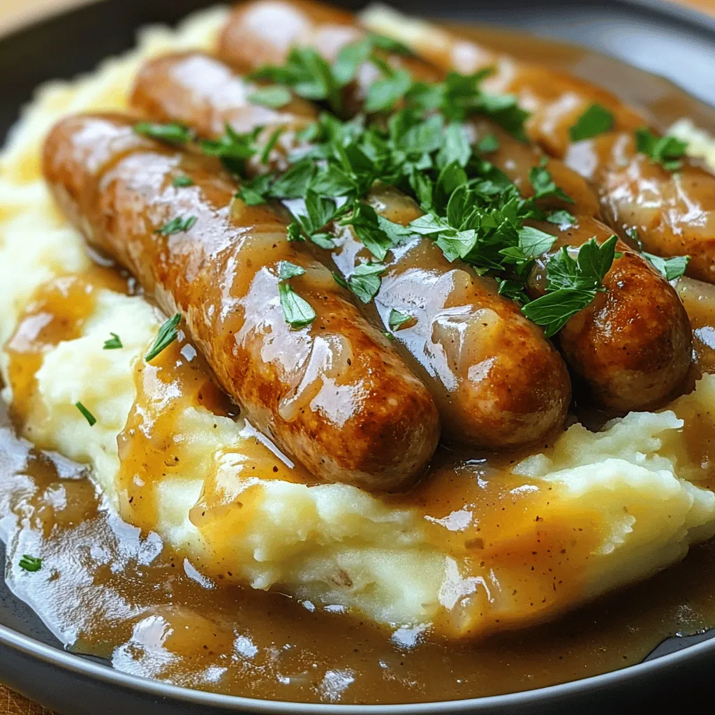 Um Bangers and Mash mit Zwiebelsoße zuzubereiten, folge diesen einfachen Schritten:
