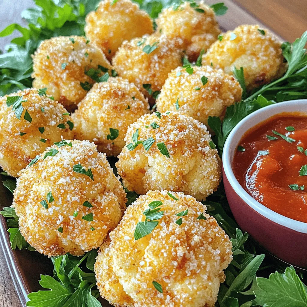 ![- 1 mittelgroßer Blumenkohlkopf - 1 Tasse Semmelbrösel (Panko empfohlen) - ½ Tasse frisch geriebener Parmesan - 2 große Eier - 1 Teelöffel Knoblauchpulver - 1 Teelöffel Zwiebelpulver - ½ Teelöffel geräuchertes Paprikapulver - ½ Teelöffel Salz - ¼ Teelöffel schwarzer Pfeffer - 1 Esslöffel frische Petersilie (zur Garnierung) - Kochspray oder Öl Ich achte immer auf die beste Qualität der Zutaten. Frischer Blumenkohl macht den besten Geschmack. Wenn du Allergien hast, gibt es gute Ersatzmöglichkeiten. Zum Beispiel kannst du glutenfreie Semmelbrösel verwenden. Du kannst auch die Eier durch eine Mischung aus Leinsamen und Wasser ersetzen. So bleibt die Rezeptur für jeden zugänglich. - Ofen auf 220°C vorheizen - Backblech mit Backpapier vorbereiten Zuerst heizen Sie den Ofen auf 220°C vor. Dies sorgt für eine perfekte Knusprigkeit. Dann bereiten Sie ein Backblech mit Backpapier vor. Das Backpapier hilft, dass die Blumenkohlhäppchen nicht kleben bleiben. - Blumenkohl in mundgerechte Röschen schneiden - Röschen in der Eiermischung wälzen Nehmen Sie den Blumenkohl und schneiden Sie ihn in kleine Röschen. Diese sollten gleichmäßig sein, damit sie gleichmäßig garen. In einer Schüssel verquirlen Sie die Eier gut. Dann wälzen Sie die Blumenkohlröschen in der Eiermischung. Achten Sie darauf, dass sie gut bedeckt sind. - Semmelbröselmischung vorbereiten - Blumenkohl wälzen und auf das Backblech legen - Backzeit und Wendepunkt beachten Jetzt kommt der spaßige Teil! Mischen Sie in einer anderen Schüssel die Semmelbrösel, den frisch geriebenen Parmesan und die Gewürze. Nehmen Sie jedes Röschen aus der Eiermischung und wälzen Sie es in der Semmelbröselmischung. Drücken Sie leicht, damit die Panade gut haftet. Legen Sie die Blumenkohlhäppchen auf das Backblech. Achten Sie darauf, Platz zwischen den Röschen zu lassen. Backen Sie die Häppchen für 20-25 Minuten. Wenden Sie sie nach der Hälfte der Zeit. Das sorgt für eine schöne goldbraune Farbe. Für das vollständige Rezept klicken Sie auf [Full Recipe]. Um die perfekte Knusprigkeit für deine Blumenkohlhäppchen zu erreichen, solltest du Panko-Semmelbrösel verwenden. Diese sind gröber und sorgen für mehr Crunch. Du kannst sie leicht in vielen Geschäften finden. Achte darauf, das Gemüse gut mit Öl zu besprühen. So wird es goldbraun und knusprig. Ein feiner Sprühnebel ist besser als viel Öl. Dies verhindert, dass die Häppchen fettig werden. Du kannst den Geschmack deiner Blumenkohlhäppchen einfach anpassen. Füge mehr Käse hinzu, wenn du einen kräftigeren Geschmack magst. Parmesan ist großartig, aber auch Cheddar oder Feta können gut passen. Frische Kräuter wie Thymian oder Oregano bringen neue Aromen. Du kannst auch verschiedene Gewürze ausprobieren. Zum Beispiel, etwas Chili für eine scharfe Note oder Kreuzkümmel für einen warmen Geschmack. Um die Vorbereitungszeit zu optimieren, bereite alles im Voraus vor. Schneide den Blumenkohl und lege ihn in Wasser. Das hilft, ihn frisch zu halten. Mische die Semmelbrösel und Gewürze schon vorher. So bist du schnell bereit, alles zu kombinieren. Du kannst sogar die Blumenkohlhäppchen im Voraus panieren und im Kühlschrank lagern. Wenn du sie später backst, sind sie schnell fertig. Für den schnellen Genuss ist dies eine nachhaltige Methode. Das spart Zeit und Stress. Wenn du das vollständige Rezept suchst, findest du es hier. {{image_4}} Wenn du glutenfrei essen möchtest, gibt es einfache Tipps. Nutze glutenfreie Semmelbrösel. Diese gibt es in vielen Geschäften. Du kannst auch gemahlene Mandeln verwenden. Für den Geschmack kannst du italienisches Gewürz hinzufügen. Das bringt einen tollen Kick in die Blumenkohlhäppchen. Möchtest du die Häppchen vegan machen? Ersetze die Eier mit einer Mischung aus Leinsamen und Wasser. Das funktioniert gut! Für den Käse kannst du Nährhefe verwenden. Sie gibt einen ähnlichen, herzhaften Geschmack. Anstatt zu panieren, kannst du die Röschen auch in Kichererbsenmehl tauchen. Das sorgt für eine knusprige Schicht. Die richtigen Dips machen deine Blumenkohlhäppchen noch besser. Ich empfehle marinara Sauce oder einen scharfen Joghurt-Dip. Diese passen super zu dem herzhaften Geschmack. Auch ein frischer Salat ist eine tolle Beilage. Er bringt Frische und Farbe auf den Teller. Serviere die Blumenkohlhäppchen auf einer Platte mit Dips. So wird es ein echter Genuss! Für das vollständige Rezept schaue hier: [Full Recipe]. Wenn du Blumenkohlhäppchen übrig hast, lagere sie im Kühlschrank. Lege sie in einen luftdichten Behälter. So bleiben sie frisch. Du kannst sie bis zu drei Tage aufbewahren. Die Temperatur sollte immer unter 4 °C liegen. Das hält die Häppchen lecker und sicher. Um die Blumenkohlhäppchen wieder aufzuwärmen, benutze den Ofen. Heize ihn auf 180 °C vor. Lege die Häppchen auf ein Backblech. Backe sie für 10 bis 15 Minuten. So werden sie wieder knusprig. Vermeide die Mikrowelle. Sie macht die Häppchen weich und matschig. Für lange Haltbarkeit kannst du die Häppchen einfrieren. Lege sie in einen Gefrierbeutel oder Behälter. Sie halten bis zu drei Monate. Zum Auftauen lege sie über Nacht in den Kühlschrank. Danach erwärmst du sie im Ofen. So bleiben sie knusprig und lecker. Diese Tipps helfen dir, die besten Blumenkohlhäppchen zu genießen. Wenn du das vollständige Rezept suchst, schau hier nach: [Full Recipe]. Die Zubereitungszeit für Crispy Parmesan Blumenkohlhäppchen beträgt etwa 15 Minuten. Die Kochzeit liegt bei 20 bis 25 Minuten. Das macht insgesamt rund 40 Minuten. Ja, Sie können Blumenkohlhäppchen im Airfryer zubereiten. Stellen Sie die Temperatur auf 200°C ein. Legen Sie die Blumenkohlröschen in einer Schicht hinein. Kochen Sie sie für etwa 12 bis 15 Minuten. Wenden Sie sie nach der Hälfte der Zeit, um eine gleichmäßige Bräunung zu erzielen. Der Airfryer gibt Ihnen eine knusprige Textur, die sehr lecker ist. Beliebte Dips für Blumenkohlhäppchen sind