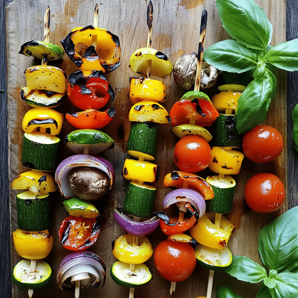 Für die perfekten Gemüse-Spieße brauche ich frisches Gemüse. Hier ist, was ich verwende: - 1 Paprika (rot, gelb oder grün), in 2,5 cm große Stücke geschnitten - 1 Zucchini, in dicke Runden geschnitten - 1 gelbe Zucchini, in dicke Runden geschnitten - 1 rote Zwiebel, in Spalten geschnitten - 8 Cherrytomaten - 1 Tasse Champignons, ganz oder halbiert, wenn sie groß sind Diese Zutaten sorgen für einen bunten und leckeren Geschmack. Gewürze machen meine Spieße besonders. Ich benutze: - 3 Esslöffel Olivenöl - 1 Teelöffel Knoblauchpulver - 1 Teelöffel getrockneter Oregano - 1 Teelöffel geräucherter Paprika - Salz und Pfeffer nach Geschmack Diese Gewürze geben dem Gemüse ein tolles Aroma. Das Olivenöl hilft auch, dass das Gemüse gut brät. Das Rezept ergibt 4 Portionen. Ich kaufe frisches Gemüse auf dem Markt. Überprüfen Sie die Qualität, um die besten Zutaten zu finden. Wenn Sie mehr Spieße machen möchten, verdoppeln Sie einfach die Zutaten. So können Sie eine große Gruppe von Freunden oder Familie überraschen. Perfekt für Grillpartys oder Picknicks! Für die detaillierte Zubereitung schauen Sie sich das Full Recipe an. Beginne mit dem Vorheizen deines Grills auf mittlere Hitze. Das sorgt für gleichmäßiges Garen. Wenn du Holzspieße benutzt, weiche sie 30 Minuten in Wasser ein. So verhinderst du, dass sie verbrennen. Metallspieße sind eine gute Alternative, die du nicht einweichen musst. Stelle sicher, dass der Grill sauber ist. Eine saubere Grillfläche gibt dem Gemüse einen tollen Geschmack. Du kannst viele Gemüsesorten nutzen. Ich empfehle Paprika, Zucchini, rote Zwiebeln, Cherrytomaten und Champignons. Schneide das Gemüse in gleich große Stücke. Das hilft beim Garen. Lege das Gemüse in eine große Schüssel. Träufle 3 Esslöffel Olivenöl darüber. Füge 1 Teelöffel Knoblauchpulver, 1 Teelöffel Oregano, 1 Teelöffel geräucherten Paprika und Salz sowie Pfeffer hinzu. Mische alles gut. So wird jedes Stück Gemüse lecker mariniert. Stecke nun das marinierte Gemüse auf die Spieße. Wechsle die Sorten für einen bunten Look. Lege die Spieße auf den Grill. Grill sie 10 bis 15 Minuten. Wende sie dabei gelegentlich. Das Gemüse sollte zart werden und schöne Grillstreifen bekommen. Nach dem Grillen lasse die Spieße kurz ruhen. Garniere sie mit frischen Basilikumblättern. So sieht das Gericht nicht nur gut aus, es schmeckt auch fantastisch. Für die vollständige Anleitung schau dir das Full Recipe an. Wählen Sie frisches Gemüse für die besten Spieße. Paprika, Zucchini und Tomaten sind ideal. Achten Sie darauf, dass die Farben leuchtend und die Texturen fest sind. Für zusätzlichen Geschmack können Sie auch Auberginen oder Champignons verwenden. Diese Sorten grillen gut und behalten ihren Geschmack. Schneiden Sie das Gemüse in gleich große Stücke, damit es gleichmäßig gart. Eine gute Marinade macht den Unterschied. Verwenden Sie Olivenöl, Knoblauchpulver und Oregano. Diese Zutaten verleihen dem Gemüse viel Geschmack. Lassen Sie das Gemüse mindestens 30 Minuten marinieren. So ziehen die Aromen besser ein. Fügen Sie auch etwas Zitronensaft hinzu. Das gibt eine frische Note. Experimentieren Sie mit Kräutern wie Thymian oder Rosmarin für neue Geschmäcker. Ein häufiger Fehler ist, das Gemüse nicht gleichmäßig zu schneiden. Das führt zu ungleichmäßigem Garen. Zudem sollten Sie das Gemüse nicht zu lange marinieren. Zu viel Zeit in der Marinade kann den Geschmack überlagern. Ein weiterer Fehler ist, die Spieße zu überladen. Lassen Sie etwas Platz zwischen den Stücken. So kann die Hitze besser zirkulieren. Achten Sie darauf, die Spieße regelmäßig zu wenden, damit sie gleichmäßig garen. {{image_4}} Um die einfachen gegrillten Gemüse-Spieße aufzupeppen, füge zusätzliche Zutaten hinzu. Du kannst zum Beispiel Feta-Käse oder Halloumi hinzufügen. Diese Käsesorten schmelzen beim Grillen und geben einen tollen Geschmack. Auch frische Kräuter wie Rosmarin oder Thymian bringen frische Aromen. Experimentiere mit verschiedenen Gemüsesorten wie Auberginen oder Spargel. Du wirst überrascht sein, wie vielseitig es ist! Diese Spieße sind von Natur aus vegan und glutenfrei, was sie perfekt für alle macht. Du kannst sie auch mit Tofu oder Tempeh anreichern. Diese Zutaten fügen Proteine hinzu und machen die Spieße sättigender. Achte darauf, dass die Marinade keine glutenhaltigen Zutaten enthält. So kannst du sicher sein, dass alle deine Gäste sie genießen können. Die Marinade ist der Schlüssel zu tollen Spießen. Variiere die verwendeten Gewürze, um neue Geschmäcker zu entdecken. Probiere zum Beispiel eine asiatische Marinade mit Sojasauce, Ingwer und Sesamöl. Oder eine mediterrane Marinade mit Zitronensaft, Minze und Kreuzkümmel. Du kannst auch eine scharfe Mischung mit Chili oder Cayennepfeffer erstellen. Nutze die *Full Recipe* als Basis, um deine eigenen Kreationen zu entwickeln! Wenn Sie Reste von den gegrillten Gemüse-Spießen haben, bewahren Sie sie in einem luftdichten Behälter auf. Lassen Sie sie vor dem Einlagern auf Raumtemperatur abkühlen. So bleibt das Gemüse frisch und lecker. Sie können die Spieße auch in Frischhaltefolie wickeln. So vermeiden Sie Gerüche im Kühlschrank. Zum Aufwärmen der Spieße empfehle ich den Ofen oder den Grill. Heizen Sie den Ofen auf 180 Grad vor. Legen Sie die Spieße auf ein Backblech und erwärmen Sie sie etwa 10 Minuten. Wenn Sie den Grill verwenden, legen Sie die Spieße kurz auf den Grill, bis sie wieder heiß sind. So bleibt das Gemüse saftig und schmeckt fast wie frisch zubereitet. Im Kühlschrank halten sich die Reste etwa drei bis vier Tage. Stellen Sie sicher, dass sie gut verpackt sind. Wenn Sie die Spieße länger aufbewahren möchten, können Sie sie einfrieren. In einem gefrierfesten Behälter oder einem Beutel halten sie sich bis zu drei Monate. Achten Sie darauf, die Spieße vor dem Einfrieren gut zu beschriften. So wissen Sie immer, was sich darin befind