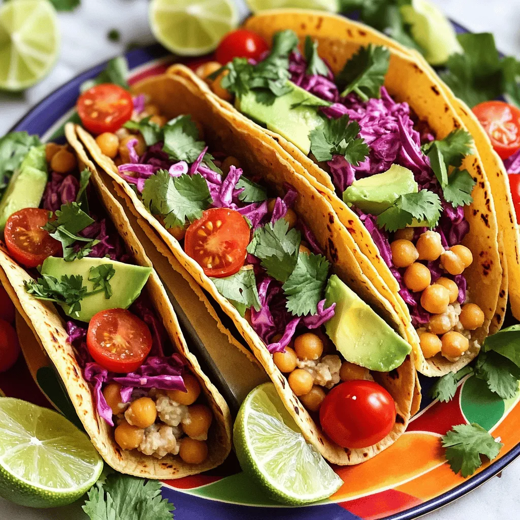 ![Kichererbsen sind die Hauptzutat. Sie liefern Protein und Ballaststoffe. Für die Kichererbsen-Tacos brauche ich: - 1 Dose (425 g) Kichererbsen, abgetropft und abgespült - 8 kleine Maistortillas Ohne Tortillas sind Tacos nicht vollständig. Die Textur ist wichtig. Ich empfehle, die Tortillas frisch zu verwenden. Die Gewürze geben den Tacos viel Geschmack. Für diese Kichererbsen-Tacos verwende ich: - 1 Esslöffel Olivenöl - 1 Teelöffel geräuchertes Paprikapulver - ½ Teelöffel Kreuzkümmel - ½ Teelöffel Knoblauchpulver - Salz und Pfeffer nach Geschmack Diese Gewürze bringen die Kichererbsen zum Leben. Räucheres Paprikapulver gibt eine tiefe, rauchige Note. Kreuzkümmel bringt Wärme und Tiefe. Die Toppings machen die Tacos bunt und lecker. Ich liebe diese Kombination: - 1 Tasse gehobelte rote Kohl - 1 Avocado, in Scheiben - ½ Tasse Kirschtomaten, halbiert - ¼ Tasse frischer Koriander, gehackt - Limettenviertel, zum Servieren Der rote Kohl bringt Crunch. Die Avocado fügt Cremigkeit hinzu. Kirschtomaten bringen Frische. Der Koriander rundet alles ab. Ein Spritzer Limette bringt die Aromen zusammen. Für das vollständige Rezept, schaue dir die [Full Recipe] an. Zuerst brauchst du 1 Dose Kichererbsen. Öffne die Dose und spüle die Kichererbsen gut ab. Das hilft, den Konservierungsstoff zu entfernen. Nimm eine mittlere Schüssel und zerdrücke die Hälfte der Kichererbsen mit einer Gabel. Lass die anderen Kichererbsen ganz. Diese Mischung gibt deine Tacos eine tolle Textur. Erhitze 1 Esslöffel Olivenöl in einer Pfanne bei mittlerer Hitze. Füge dann die Kichererbsenmischung in die Pfanne. Streue 1 Teelöffel geräuchertes Paprikapulver, ½ Teelöffel Kreuzkümmel und ½ Teelöffel Knoblauchpulver dazu. Vergiss nicht, etwas Salz und Pfeffer hinzuzufügen! Brate die Kichererbsen für 5-6 Minuten an. Rühre gelegentlich um, bis sie schön warm und leicht knusprig sind. Während die Kichererbsen braten, kannst du die Tortillas erwärmen. Nimm 8 kleine Maistortillas. Du kannst sie in einer separaten Pfanne oder in der Mikrowelle kurz erhitzen. Sie sollten weich und biegsam sein, damit du sie gut füllen kannst. Jetzt kommt der beste Teil! Nimm eine Tortilla und lege einen großen Löffel der Kichererbsenmischung darauf. Danach füge gehobelten roten Kohl, einige Avocadoscheiben und halbierte Kirschtomaten hinzu. Zum Schluss garniere die Tacos mit frischem Koriander. Lege ein paar Limettenviertel an die Seite für einen frischen Kick. Du hast jetzt köstliche Kichererbsen-Tacos! Für die genauen Schritte und Zutaten, schau dir das [Full Recipe] an. Um die perfekte Konsistenz für deine Kichererbsen-Tacos zu erreichen, zerdrücke die Kichererbsen nur teilweise. Das sorgt für eine gute Mischung aus cremigen und ganzen Kichererbsen. So bekommst du eine schöne Textur. Achte auch darauf, die Kichererbsen nicht zu lange zu braten. Sie sollen warm und leicht knusprig sein, aber nicht trocken. Ein häufiger Fehler ist, die Kichererbsen zu lange zu garen. Dadurch verlieren sie ihre schöne Konsistenz. Ein weiterer Fehler ist, zu viele Gewürze auf einmal hinzuzufügen. Beginne mit kleinen Mengen, um den Geschmack zu kontrollieren. Wenn du die Kichererbsen nicht vorher abspülst, kann es zu einer zu salzigen Note kommen. Das Abspülen entfernt überschüssiges Salz und sorgt für einen besseren Geschmack. Die Gewürze sind der Schlüssel zu gut gewürzten Kichererbsen-Tacos. Du kannst das geräucherte Paprikapulver durch süßes Paprikapulver ersetzen, wenn du es milder magst. Kreuzkümmel gibt einen tollen Geschmack, aber du kannst auch andere Gewürze wie Chili oder Oregano hinzufügen. Experimentiere mit den Gewürzen, um deinen persönlichen Geschmack zu finden. Fühle dich frei, die Mischung zu ändern und neue Aromen zu entdecken. {{image_4}} Kichererbsen-Tacos sind von Natur aus vegan. Du brauchst nur die richtigen Zutaten. Die Basis ist die Kichererbsen-Mischung. Diese Mischung schmeckt auch ohne tierische Produkte gut. Füge einfach frisches Gemüse hinzu. Zum Beispiel: - Rote Paprika - Gurke - Avocado Diese Zutaten geben den Tacos mehr Farbe und einen guten Geschmack. Du kannst auch deine Lieblingssauce hinzufügen. So wird das Gericht noch leckerer. Wenn du es schärfer magst, sind Jalapeños eine tolle Wahl. Ein paar geschälte und geschnittene Jalapeños bringen mehr Würze. Füge sie einfach zur Kichererbsen-Mischung in der Pfanne hinzu. So entfalten sie ihren Geschmack gut. Du kannst auch frische Jalapeños als Topping verwenden. Das gibt den Tacos einen extra Kick! Eine Taco-Bowl ist eine leckere und kreative Variante. Du kannst alle Zutaten in einer Schüssel anrichten. Beginne mit einer Schicht Reis oder Quinoa als Basis. Dann verteile die Kichererbsen-Mischung darauf. Füge das frische Gemüse und die Toppings hinzu. Das sieht schön aus und schmeckt toll. Du kannst die Bowl auch für Meal Prep nutzen. So hast du gesunde Mahlzeiten für die Woche. Für das vollständige Rezept, schaue dir die *Full Recipe* an. Kichererbsen-Tacos sind lecker und einfach zuzubereiten. Wenn du Reste hast, bewahre sie richtig auf. Die Tacos sollten in einem luftdichten Behälter gelagert werden. So bleiben sie frisch. Achte darauf, die Kichererbsen-Mischung von den Tortillas zu trennen. Tortillas werden schnell weich, wenn sie in der Mischung liegen. Um Reste aufzubewahren, stelle sicher, dass alles gut abgekühlt ist. Lege die Kichererbsen-Mischung in einen Behälter. Die Tortillas kannst du in einen separaten Behälter geben. So bleibt die Textur knackig. Reste halten sich im Kühlschrank bis zu drei Tage. Wenn du deine Kichererbsen-Tacos wieder aufwärmst, mache das vorsichtig. Erhitze die Kichererbsen in einer Pfanne bei mittlerer Hitze. Rühre sie gut um, damit sie gleichmäßig warm werden. Tortillas kannst du kurz in der Pfanne oder Mikrowelle erhitzen. So werden sie wieder weich und lecker. Probiere, die Tacos mit frischen Toppings wie Koriander oder Avocado zu garnieren, um den Ge