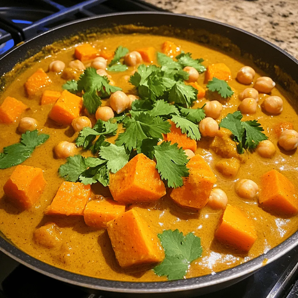 ![- 2 mittelgroße Süßkartoffeln, gewürfelt - 1 Dose (425 g) Kichererbsen, abgetropft und abgespült - 1 Dose (400 ml) Kokosmilch Süßkartoffeln sind das Herz dieses Gerichts. Sie bringen eine süße Note mit. Kichererbsen liefern Protein und Ballaststoffe. Ihre cremige Konsistenz passt perfekt zur Kokosmilch. Diese Zutaten machen dein Curry nahrhaft und lecker. - 2 Esslöffel Currypulver - 1 Teelöffel Kreuzkümmel - 2 Esslöffel Olivenöl Gewürze sind der Schlüssel zu einem guten Curry. Currypulver gibt deinem Gericht viel Geschmack. Kreuzkümmel fügt Tiefe hinzu. Olivenöl hilft, die Zwiebeln und Gewürze gut anzubraten. Diese Aromen zusammen bringen dein Curry zum Leben. - Frischer Koriander - Salz und Pfeffer nach Geschmack Frischer Koriander bringt Frische ins Gericht. Er sieht schön aus und schmeckt toll. Salz und Pfeffer sind wichtig, um die Aromen zu betonen. Du kannst die Menge nach deinem Geschmack anpassen. Für das vollständige Rezept, schau dir [Full Recipe] an. Erhitze das Olivenöl in einem großen Topf bei mittlerer Hitze. Füge die fein gehackte Zwiebel hinzu. Brate sie etwa 5 Minuten lang an, bis sie glasig ist. Dies gibt deinem Curry eine tolle Basis. Jetzt kommt der aromatische Teil! Gib den gehackten Knoblauch und den geriebenen Ingwer in den Topf. Brate alles 2 Minuten lang, bis es duftet. Diese Aromen machen dein Gericht besonders lecker. Streue das Currypulver, Kurkuma, Kreuzkümmel und die roten Chiliflocken über die Zwiebeln. Rühre gut um und röste die Gewürze für 1 Minute. Dann füge die gewürfelten Süßkartoffeln hinzu. Mische alles gut, damit die Süßkartoffeln die Gewürze aufnehmen. Gieße die Gemüsebrühe und die Kokosmilch in den Topf. Bring die Mischung langsam zum Köcheln. Füge dann die abgetropften Kichererbsen hinzu und rühre alles gut um. Decke den Topf ab und lasse das Curry 20-25 Minuten köcheln. Die Süßkartoffeln sollten zart sein. Schmecke das Curry mit Salz und Pfeffer ab. Für das gesamte Rezept, schau dir die [Full Recipe] an. Um die perfekte Konsistenz für dein Süßkartoffel Kichererbsen Curry zu erreichen, teste die gekochten Süßkartoffeln. Sie sollten weich, aber nicht matschig sein. Nimm eine Gabel und steche hinein. Wenn die Gabel leicht durchgeht, ist die Süßkartoffel perfekt. Achte darauf, die Stücke gleichmäßig zu schneiden. So garen sie gleichmäßig und verhindern, dass einige Stücke zerfallen. Die richtige Würze ist der Schlüssel zu einem großartigen Curry. Du kannst die Zutaten ganz nach deinem Geschmack anpassen. Magst du es schärfer? Füge mehr Chiliflocken hinzu. Für einen tieferen Geschmack, probiere mehr Kreuzkümmel. Du kannst auch frische Kräuter wie Koriander oder Minze hinzufügen. Sie bringen Frische und Farbe in dein Gericht. Die Kochzeit spielt eine große Rolle für den Geschmack. Überwache die Zeit genau, um das Beste aus deinem Curry herauszuholen. Lass es etwa 20-25 Minuten köcheln. Rühre zwischendurch um, um ein Anbrennen zu vermeiden. Überprüfe gelegentlich die Süßkartoffeln auf ihre Zartheit. Wenn sie weich sind, ist dein Curry bereit. Für das vollständige Rezept, schau dir die [Full Recipe] an. {{image_4}} Um dein Süßkartoffel Kichererbsen Curry aufregender zu machen, kannst du andere Gemüse hinzufügen. Spinat ist eine tolle Wahl. Er gibt Farbe und Nährstoffe. Erbsen sind eine weitere Option. Sie bringen Süße und Knusprigkeit ins Gericht. Du kannst auch Karotten oder Zucchini ausprobieren. Diese Gemüse bringen einen neuen Geschmack und sind gesund. Die Schärfe ist wichtig in einem Curry. Wenn du es milder magst, reduziere die Chiliflocken. Du kannst sie auch ganz weglassen. Stattdessen verwende süßere Gewürze wie Paprika. Für mehr Wärme sind frische Chilis eine gute Wahl. Auch Ingwer kann die Schärfe erhöhen. Experimentiere mit verschiedenen Gewürzen, um deinen perfekten Geschmack zu finden. Wenn du glutenfrei essen möchtest, ist dieses Curry ideal. Alle Zutaten sind von Natur aus glutenfrei. Das Gericht ist auch vegan. Du kannst es mit Reis oder Quinoa servieren. So hast du eine vollwertige Mahlzeit. Für eine proteinreiche Option, füge mehr Kichererbsen hinzu. Das macht dein Gericht noch nahrhafter. Wie lange hält sich das Curry? Das Süßkartoffel Kichererbsen Curry hält sich im Kühlschrank etwa 3 bis 5 Tage. Bewahre es in einem luftdichten Behälter auf. So bleibt der Geschmack frisch und lecker. Achte darauf, das Curry abkühlen zu lassen, bevor du es in den Kühlschrank stellst. Schritt-für-Schritt Anleitung für das Einfrieren 1. Lass das Curry zuerst vollständig abkühlen. 2. Fülle das Curry in einen gefrierfesten Behälter oder einen Zip-Beutel. 3. Lasse etwas Platz, da sich die Flüssigkeit beim Einfrieren ausdehnt. 4. Beschrifte den Behälter mit dem Datum. 5. Friere das Curry ein. So bleibt es bis zu 3 Monate haltbar. Tipps zum Aufwärmen des Currys für den besten Geschmack Um das Curry aufzuwärmen, gibt es zwei einfache Methoden. Du kannst es entweder in der Mikrowelle oder auf dem Herd erwärmen. - Mikrowelle: Fülle das Curry in eine mikrowellengeeignete Schüssel. Decke die Schüssel ab und erhitze es in Intervallen von 1-2 Minuten. Rühre zwischendurch um. - Herd: Gib das Curry in einen Topf und erwärme es bei mittlerer Hitze. Rühre ständig, damit es nicht anbrennt. Füge bei Bedarf einen Spritzer Wasser oder etwas Kokosmilch hinzu, um die Konsistenz zu verbessern. Die Zubereitung des Currys dauert insgesamt etwa 40 Minuten. - Vorbereitungszeit: 15 Minuten - Kochzeit: 25 Minuten Ja, du kannst das Rezept ganz einfach anpassen. - Füge zusätzliches Gemüse wie Spinat oder Karotten hinzu. - Ersetze Kichererbsen durch Linsen für eine andere Textur. - Variiere die Gewürze nach deinem Geschmack. - Probiere unterschiedliche Chili-Sorten für mehr oder weniger Schärfe. Wenn dein Curry nicht würzig genug ist, versuche diese Tipps: - Verwende frisch gemahlene Gewürze für mehr Geschmack. - Röste die Gewürze länger an,