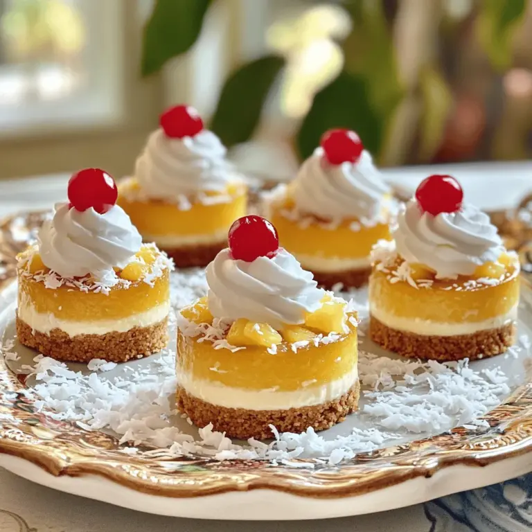 ![Für diese leckeren Mini-Cheesecakes benötigst du folgende Hauptzutaten: - 1 Tasse Graham-Cracker-Brösel - 1/4 Tasse ungesalzene Butter, geschmolzen - 2 Esslöffel brauner Zucker - 1 Paket (226 g) Frischkäse, weich gemacht - 1/2 Tasse saure Sahne - 1/3 Tasse Kristallzucker - 1 Teelöffel Vanilleextrakt - 1 großes Ei - 1 Tasse zerdrückte Ananas, abgetropft Diese Zutaten geben deinen Cheesecakes eine tolle Textur und Geschmack. Die Graham-Cracker-Brösel sorgen für eine knusprige Kruste. Der Frischkäse macht die Füllung cremig und reichhaltig. Um deine Mini-Cheesecakes schön zu dekorieren, brauchst du: - Maraschino-Kirschen zur Dekoration - Schlagsahne zum Servieren (optional) Die Kirschen geben einen farbenfrohen Akzent. Die Schlagsahne macht das Dessert extra lecker und sieht toll aus. Für die Zubereitung benötigst du einige einfache Utensilien: - Muffinblech - Papierförmchen oder Kochspray - Mittlere und große Schüssel - Elektrischer Mixer - Löffel oder Spatel Mit diesen Hilfsmitteln bereitest du die Cheesecakes schnell und einfach zu. Wenn du alles griffbereit hast, kannst du gleich mit dem Backen beginnen. Für die vollständige Rezeptur, schau dir die [Full Recipe] an. Heizen Sie Ihren Ofen auf 160°C vor. Nehmen Sie ein Muffinblech und legen Sie Papierförmchen hinein. Alternativ können Sie das Blech auch mit Kochspray einsprühen. So lösen sich die Cheesecakes später gut. In einer mittelgroßen Schüssel vermischen Sie die Graham-Cracker-Brösel, die geschmolzene Butter und den braunen Zucker. Rühren Sie alles gut durch, bis die Mischung feucht ist. Sie sollte die Konsistenz von nassem Sand haben. Verteilen Sie die Mischung gleichmäßig auf dem Boden der Muffinförmchen. Drücken Sie die Kruste stark zusammen, damit sie stabil bleibt. In einer großen Schüssel rühren Sie den weichen Frischkäse mit einem Mixer glatt. Fügen Sie die saure Sahne, den Kristallzucker und den Vanilleextrakt hinzu. Mixen Sie alles, bis es gut vermischt ist. Schlagen Sie dann vorsichtig das Ei unter, bis es gerade eingearbeitet ist. Achten Sie darauf, nicht zu viel zu mixen. Heben Sie die abgetropfte zerdrückte Ananas vorsichtig unter die Mischung. Löffeln Sie die Cheesecake-Füllung über die abgekühlten Krusten. Füllen Sie jedes Muffinförmchen fast bis zum Rand. Backen Sie die Cheesecakes für 18 bis 20 Minuten. Die Mitte sollte fest, aber leicht wackelig sein. Nehmen Sie das Blech aus dem Ofen und lassen Sie die Cheesecakes bei Raumtemperatur abkühlen. Kühlen Sie sie für mindestens 2 Stunden im Kühlschrank. So werden sie schön fest und die Aromen entfalten sich. Um die perfekte Kruste zu machen, beginnen Sie mit frischen Graham-Cracker-Bröseln. Zerbröseln Sie sie fein. Mischen Sie dann die Brösel mit geschmolzener Butter und braunem Zucker. Rühren Sie alles gut zusammen. Die Mischung sollte eine feuchte, sandige Textur haben. Verteilen Sie die Mischung gleichmäßig in die Muffinförmchen. Drücken Sie sie fest, um eine stabile Kruste zu bilden. Backen Sie die Kruste für 7-8 Minuten. Achten Sie darauf, dass sie leicht goldbraun wird. Ein häufiger Fehler ist, die Kruste nicht fest genug zu drücken. Das führt dazu, dass sie beim Herausnehmen bricht. Ein weiterer Fehler ist, die Cheesecake-Füllung zu lange zu mixen. Zu viel Mischzeit macht die Füllung luftig und weniger cremig. Stellen Sie auch sicher, dass die Ananas gut abgetropft ist. Zu viel Flüssigkeit kann den Cheesecake verwässern. Vermeiden Sie es, die Cheesecakes zu lange im Ofen zu lassen. Sie sollten leicht wackelig in der Mitte sein. Für die beste Präsentation setzen Sie die Mini-Cheesecakes auf einen schönen Teller. Arrangieren Sie sie in einem Kreis. Dekorieren Sie jeden Cheesecake mit einer Maraschino-Kirsche. Ein Klecks Schlagsahne macht sie noch schöner. Streuen Sie etwas geraspelten Kokosnuss um die Cheesecakes. Dies gibt einen tropischen Look. Servieren Sie sie gut gekühlt. So schmecken sie am besten. Für das vollständige Rezept schauen Sie sich die Anleitung oben an! {{image_4}} Wenn Sie Ananas lieben, probieren Sie andere Früchte aus. Mango passt gut und bringt einen süßen Geschmack. Sie können auch Pfirsiche oder Kirschen verwenden. Diese Früchte geben dem Cheesecake eine frische Note. Ich empfehle, die Früchte vorher leicht zu kochen. So bleibt der Geschmack intensiver. Für glutenfreie Cheesecakes verwenden Sie glutenfreie Kekse. Sie können auch die Butter durch Kokosöl ersetzen. Veganer können den Frischkäse durch eine pflanzliche Alternative ersetzen. Nutzen Sie auch ein Ei-Ersatzprodukt. Diese Anpassungen machen das Rezept für viele geeignet. Fügen Sie etwas Zimt oder Muskatnuss hinzu. Das gibt Ihren Cheesecakes eine warme Note. Für mehr Crunch, streuen Sie Nüsse in die Kruste. Karamellsauce oben drauf sorgt für einen süßen Kick. Diese kleinen Extras machen jeden Bissen besonders. Für das vollständige Rezept besuchen Sie den Abschnitt [Full Recipe]. Um die Mini Ananas-Upside-Down-Cheesecakes frisch zu halten, lagern Sie sie im Kühlschrank. Verwenden Sie einen luftdichten Behälter oder decken Sie sie gut ab. Dies hilft, den Geschmack und die Textur zu bewahren. Vermeiden Sie, sie neben starken Gerüchen zu lagern, da sie leicht Aromen aufnehmen. Im Kühlschrank bleiben die Cheesecakes bis zu fünf Tage frisch. Wenn Sie sie länger aufbewahren möchten, frieren Sie sie ein. In einem luftdichten Behälter können sie bis zu drei Monate im Gefrierschrank halten. Achten Sie darauf, die Cheesecakes gut einzupacken, um Gefrierbrand zu vermeiden. Wenn Sie die Mini Cheesecakes genießen möchten, lassen Sie sie zuerst im Kühlschrank auftauen. Dies dauert etwa zwei bis vier Stunden. Sie können sie warm servieren, indem Sie sie für einige Sekunden in die Mikrowelle stellen. Achten Sie darauf, sie nicht zu überhitzen, da sie sonst ihre leckere Textur verlieren. Die Cheesecakes müssen mindestens zwei Stunden im Kühlschrank kühlen. Dies hilft, die Füllung fest z