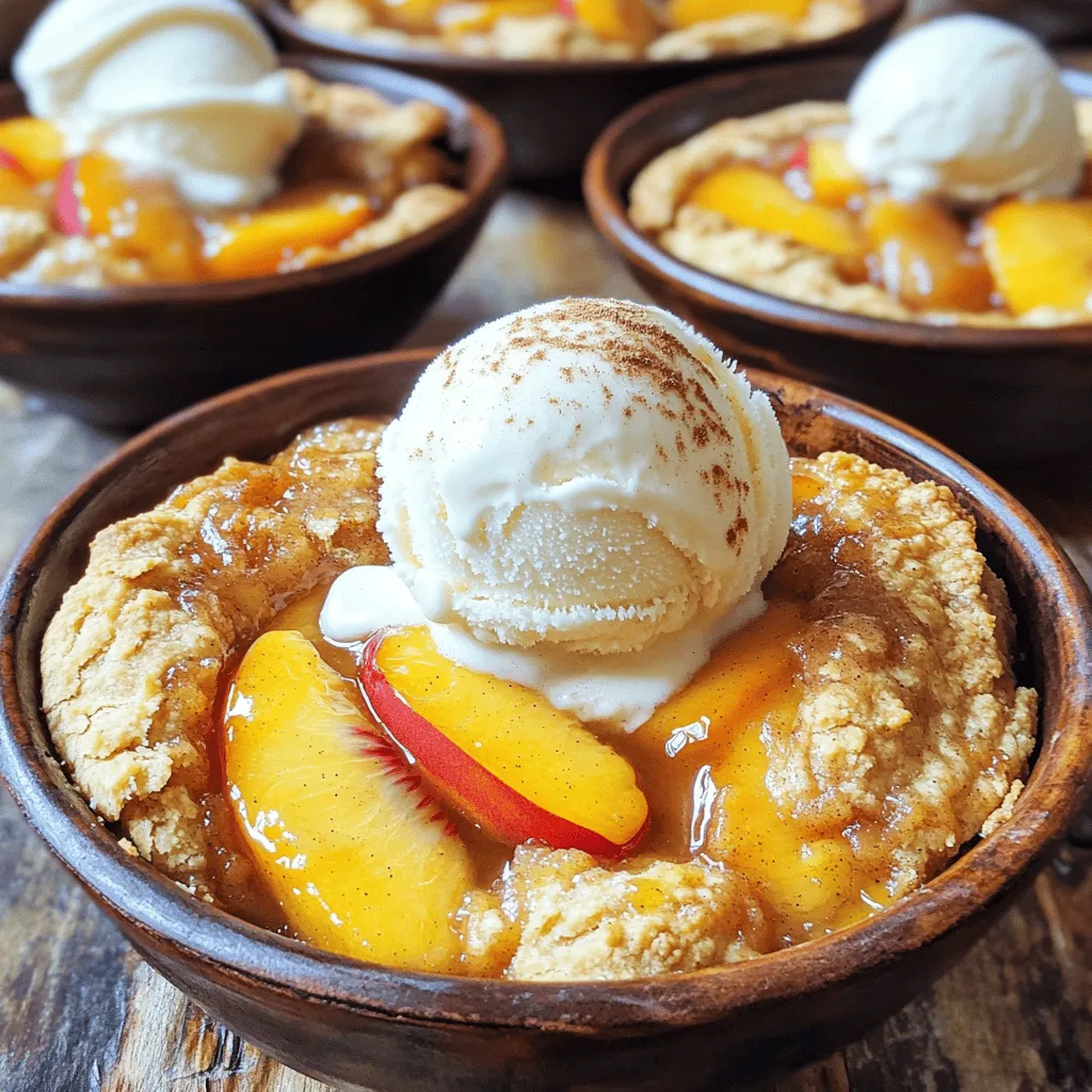 ![Die Hauptzutaten machen den Pfirsichparadies-Cobbler so besonders. Hier sind sie: - 6 reife Pfirsiche, geschält, entkernt und in Scheiben geschnitten - 1 Tasse Zucker - 1 Esslöffel Zitronensaft - 1 Teelöffel Zimtpulver - 1 Teelöffel Vanilleextrakt - 1 ½ Tassen Weizenmehl - 1 Esslöffel Backpulver - ½ Teelöffel Salz - 1 Tasse Milch - ½ Tasse ungesalzene Butter, geschmolzen - 1 Teelöffel Mandel-Extrakt - 1 Esslöffel brauner Zucker (zum Bestreuen) - Optional: Vanilleeis zum Servieren Diese Zutaten bringen den fruchtigen Geschmack und die süße Note in dein Dessert. Die frischen Pfirsiche sind der Star. Sie bringen eine saftige Textur und einen tollen Geschmack. Die Gewürze sind wichtig für das Aroma. Zimt gibt Wärme und Tiefe. Vanilleextrakt bringt Süße und rundet den Geschmack ab. Zitronensaft fügt einen frischen Kick hinzu. Diese Gewürze machen dein Dessert lebendig. Falls du Allergien hast, gibt es gute Alternativen. Verwende glutenfreies Mehl statt Weizenmehl. Für Milchallergien kannst du Mandel- oder Hafermilch nutzen. Statt Butter kannst du Kokosöl verwenden. So bleibt der Genuss erhalten, ohne Allergien auszulösen. Heizen Sie zuerst Ihren Ofen auf 175°C (350°F) vor. Das sorgt für eine gleichmäßige Hitze während des Backens. Während der Ofen aufheizt, können Sie die Pfirsiche vorbereiten. Sie benötigen 6 reife Pfirsiche. Schälen und entkernen Sie sie. Schneiden Sie die Pfirsiche in dünne Scheiben. Legen Sie die geschnittenen Pfirsiche in eine große Schüssel. Fügen Sie 1 Tasse Zucker, 1 Esslöffel Zitronensaft, 1 Teelöffel Zimtpulver und 1 Teelöffel Vanilleextrakt hinzu. Mischen Sie alles vorsichtig. Lassen Sie die Mischung etwa 15 Minuten ziehen. So entfalten sich die Aromen der Pfirsiche. Jetzt kommt der Teig. In einer anderen großen Schüssel mischen Sie 1 ½ Tassen Weizenmehl, 1 Esslöffel Backpulver und ½ Teelöffel Salz. Rühren Sie gut um, damit alles gleichmäßig vermischt ist. Fügen Sie langsam 1 Tasse Milch und ½ Tasse geschmolzene Butter hinzu. Rühren Sie weiter, bis der Teig glatt ist. Geben Sie 1 Teelöffel Mandel-Extrakt dazu und vermengen Sie ihn gut. Ihr Teig ist nun bereit. Gießen Sie den Teig in eine gefettete Auflaufform, etwa 23x33 cm. Verteilen Sie den Teig gleichmäßig. Jetzt ist es Zeit für die Pfirsiche. Löffeln Sie die Pfirsichmischung samt Saft gleichmäßig über den Teig. Streuen Sie 1 Esslöffel braunen Zucker darüber. Das sorgt für eine tolle Kruste. Backen Sie den Cobbler im vorgeheizten Ofen für 40-45 Minuten. Die Oberseite sollte goldbraun sein. Ein Zahnstocher sollte sauber herauskommen, wenn Sie ihn in den Teig stecken. Lassen Sie den Cobbler etwa 10 Minuten abkühlen, bevor Sie ihn servieren. So bleibt er saftig und lecker. Für die besten Ergebnisse können Sie ihn mit Vanilleeis servieren. Das passt perfekt zu den warmen Pfirsichen! Ein häufiger Fehler ist, die Pfirsiche nicht gut vorzubereiten. Achte darauf, sie zu schälen und zu entkernen. Verwende reife Pfirsiche für den besten Geschmack. Lasse die Pfirsiche nach dem Mischen mit Zucker etwa 15 Minuten ziehen. So können sie ihre Saftigkeit entfalten. Ein weiterer Fehler ist, den Teig zu lange zu mischen. Mische ihn nur, bis alles gut vermengt ist. Übermischung kann den Teig hart machen. Achte darauf, den Cobbler nicht zu lange zu backen. Die perfekte Zeit ist 40-45 Minuten. Du kannst das Rezept leicht anpassen. Probiere andere Früchte wie Äpfel oder Beeren. Füge einen Hauch von Ingwer oder Muskatnuss hinzu, wenn du einen besonderen Kick magst. Für eine nussige Note kannst du gehackte Mandeln oder Walnüsse hinzufügen. Für eine weniger süße Variante kannst du den Zucker reduzieren. Nutze Honig oder Agavensirup als Alternative für einen anderen Geschmack. Die Backzeit ist wichtig für die perfekte Konsistenz. Achte darauf, dass die Oberseite goldbraun ist. Ein Zahnstocher sollte sauber herauskommen, wenn du ihn in den Teig steckst. Wenn der Cobbler noch zu feucht aussieht, backe ihn ein paar Minuten länger. Lass ihn nach dem Backen kurz abkühlen. Dies hilft, die Konsistenz zu festigen, bevor du ihn servierst. Für das beste Ergebnis serviere den Cobbler warm. Du kannst ihn mit einer Kugel Vanilleeis toppen. So wird jedes Stück zu einem Genuss! Für das vollständige Rezept sieh dir die [Full Recipe] an. {{image_4}} Für einen glutenfreien Pfirsich-Cobbler tauschen Sie das Weizenmehl gegen eine glutenfreie Mehlmischung. Das sorgt für eine ähnliche Textur wie das Original. Achten Sie darauf, dass alle anderen Zutaten ebenfalls glutenfrei sind. So genießen Sie den leckeren Cobbler ohne Sorgen. Um einen veganen Pfirsich-Cobbler zu machen, ersetzen Sie die Milch durch Pflanzenmilch wie Mandel- oder Hafermilch. Nutzen Sie vegane Butter oder Kokosöl anstelle der ungesalzenen Butter. Diese Alternativen machen den Cobbler genauso köstlich und saftig. Sie müssen sich keine Gedanken um tierische Produkte machen. Experimentieren Sie mit verschiedenen Früchten! Sie können Äpfel, Beeren oder sogar Kirschen verwenden. Mischen Sie die Früchte für einen bunten Cobbler. Zudem können Sie die Zuckermenge nach Ihrem Geschmack anpassen. So bleibt der Cobbler immer spannend und frisch. Für das Grundrezept, das Sie leicht anpassen können, schauen Sie sich das Pfirsichparadies-Cobbler Rezept an. Wenn Sie nach dem Essen etwas Cobbler übrig haben, lagern Sie ihn richtig. Lassen Sie den Cobbler zuerst abkühlen. Decken Sie ihn dann mit Frischhaltefolie oder einem Deckel ab. So bleibt er frisch. Im Kühlschrank hält er sich bis zu drei Tage. Wenn Sie ihn länger aufbewahren möchten, sollten Sie ihn einfrieren. Um Pfirsich-Cobbler einzufrieren, schneiden Sie ihn in Portionen. Wickeln Sie jede Portion in Frischhaltefolie und dann in Alufolie. So schützen Sie den Cobbler vor Frostbrand. Sie können den Cobbler bis zu drei Monate im Gefrierfach aufbewahren. Zum Auftauen legen Sie ihn einfach in den Kühlschrank, bis er weich ist. Um den Cobbler 