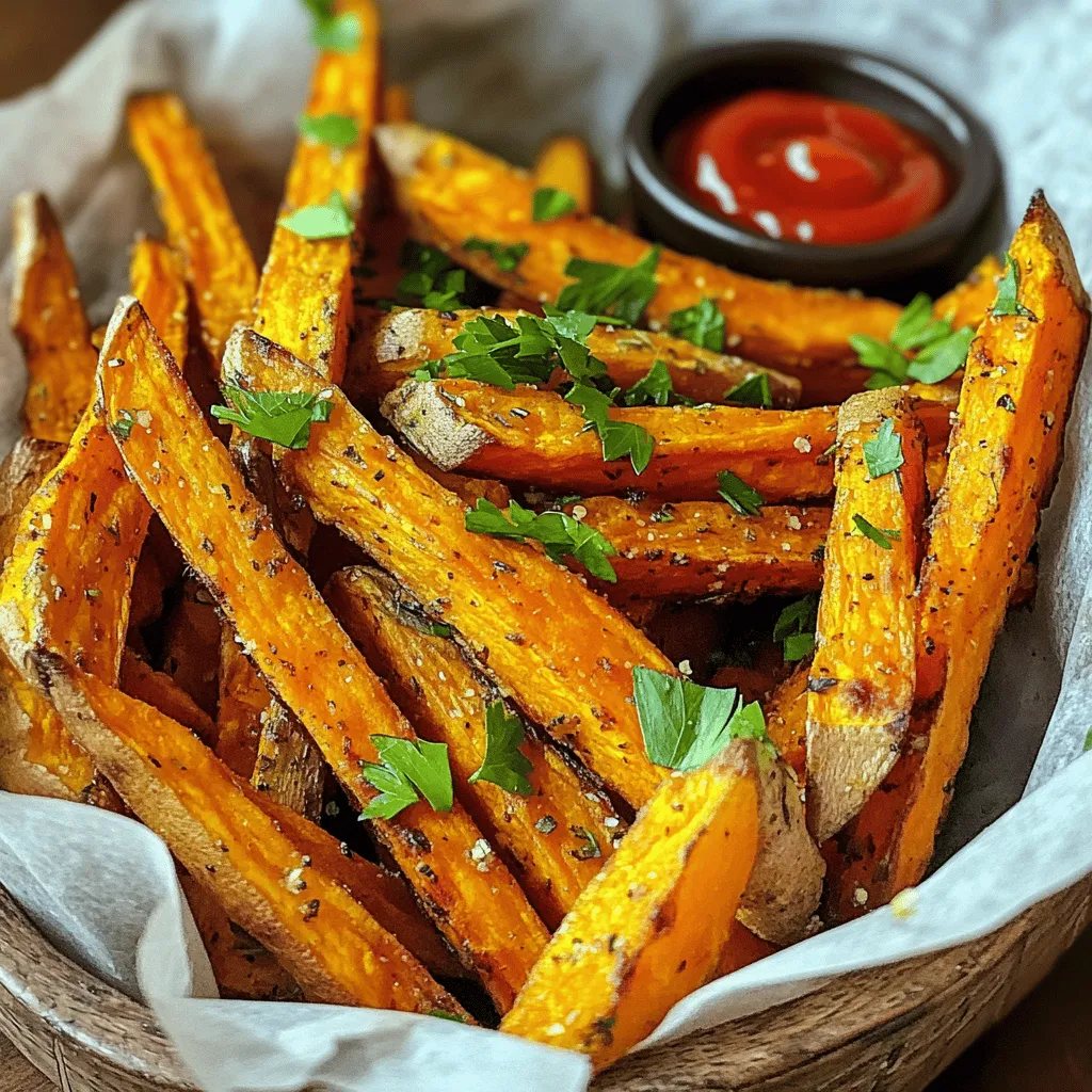 ![- 2 große Süßkartoffeln - 4 Knoblauchzehen - 2 Esslöffel Olivenöl Die Hauptzutaten sind einfach und frisch. Süßkartoffeln bieten einen süßen Geschmack und eine tolle Farbe. Knoblauch bringt ein reiches Aroma. Olivenöl hilft beim Rösten und macht die Pommes knusprig. - Paprika - Getrockneter Thymian - Getrockneter Rosmarin Gewürze machen den Unterschied. Paprika fügt eine leichte Süße hinzu. Thymian und Rosmarin bringen Aroma und Tiefe. Diese Kräuter sind perfekt für das Gericht. - Salz und Pfeffer - Frische Petersilie (zum Garnieren) Salz und Pfeffer sind wichtig für den Geschmack. Sie heben die Aromen der anderen Zutaten hervor. Frische Petersilie sorgt für einen schönen Farbkontrast und Frische. Mit diesen Zutaten wird das Gericht noch schmackhafter. Für das detaillierte Rezept, schau dir die vollständige Anleitung an: [Full Recipe]. Heizen Sie Ihren Ofen auf 220 °C (425 °F) vor. Das sorgt für knusprige Pommes. Schneiden Sie die Süßkartoffeln in dünne Streifen. Dünne Pommes werden gleichmäßiger gar. Achten Sie darauf, dass alle Stücke gleich groß sind. So garen sie gleichmäßig. In einer großen Schüssel geben Sie die Süßkartoffeln. Fügen Sie den gehackten Knoblauch, Olivenöl, Paprika, Thymian, Rosmarin, Salz und Pfeffer hinzu. Mischen Sie alles gut. Jede Pommes sollte schön gewürzt sein. Das sorgt für tollen Geschmack. Verteilen Sie die gewürzten Pommes auf einem Backblech. Achten Sie darauf, dass sie nicht übereinander liegen. So können sie gleichmäßig rösten. Backen Sie sie 25-30 Minuten im Ofen. Wenden Sie die Pommes nach 15 Minuten. So werden sie goldbraun und knusprig. Nehmen Sie das Blech heraus und lassen Sie die Pommes kurz abkühlen. Garnieren Sie sie mit frischer Petersilie. Sie können die vollständige Anleitung in meinem [Full Recipe] finden. - Richtige Dicke der Pommes: Schneide die Süßkartoffeln gleichmäßig. So garen sie gleichmäßig. Ich empfehle, die Pommes etwa 1 cm dick zu schneiden. Dünnere Pommes werden schneller knusprig. Dickere Pommes bleiben saftig. - Vermeidung von zusammengepressten Pommes: Lege die Pommes so auf das Blech, dass sie sich nicht berühren. Wenn sie zu nah beieinander liegen, dämpfen sie sich. So werden sie nicht knusprig. - Kombination mit Dips: Serviere die Pommes mit verschiedenen Dips. Knoblauch-Aioli oder würziger Ketchup sind sehr beliebt. Auch ein frischer Joghurt-Dip passt gut. - Präsentationstipps: Stelle die Pommes in einem rustikalen Korb vor. Lege ein Papiertuch hinein. So bleibt es gemütlich. Füge eine kleine Schüssel mit Dip dazu. Das sieht einladend aus. - Vorteile von frischen Kräutern: Frische Kräuter bringen Farbe und Geschmack. Sie machen die Pommes lebendig. Petersilie oder Schnittlauch sind tolle Optionen. - Alternativen für Trockenkräuter: Wenn du keine frischen Kräuter hast, benutze getrocknete. Sie sind nicht ganz so stark im Geschmack, aber immer noch lecker. Verwende etwa ein Drittel der Menge frischer Kräuter. Für das vollständige Rezept, schaue dir das Full Recipe an. {{image_4}} Für einen zusätzlichen Kick können Sie Chili hinzufügen. Es gibt den Pommes eine schöne Schärfe. Wenn Sie Käse mögen, probieren Sie Parmesan oder andere Käsesorten. Der Käse schmilzt und wird goldbraun, was einen tollen Geschmack ergibt. Statt die Pommes zu backen, können Sie sie auch frittieren. Das macht sie extra knusprig. Eine Luftfritteuse ist auch eine gute Wahl. Sie benötigt weniger Öl und macht die Pommes trotzdem lecker. Kombinieren Sie die Pommes mit anderen Gemüsefrüchten. Sie passen gut zu Zucchini oder Karotten. Servieren Sie die Pommes mit proteinreichen Optionen wie Hühnchen oder Tofu. Das gibt eine ausgewogene Mahlzeit. Um die Pommes frisch zu halten, lagere sie im Kühlschrank. Lege die Pommes in einen luftdichten Behälter. So bleiben sie für 3 bis 4 Tage gut. Wenn du sie länger aufbewahren möchtest, kannst du sie einfrieren. Lege die Pommes auf ein Backblech. Friere sie für etwa 1 Stunde ein. Danach kannst du sie in einen Gefrierbeutel geben. So bleiben sie für bis zu 3 Monate haltbar. Die besten Methoden zum Aufwärmen sind im Ofen oder in der Luftfritteuse. Heize den Ofen auf 200 °C vor. Lege die Pommes auf ein Backblech und backe sie für 10 bis 15 Minuten. In der Luftfritteuse dauert es nur 5 bis 7 Minuten. So wirst du matschige Pommes vermeiden. Verwende kein Mikrowelle, denn das macht sie weich und schlaff. Die Pommes sind im Kühlschrank 3 bis 4 Tage haltbar. Achte auf Anzeichen von Verderblichkeit. Wenn sie einen seltsamen Geruch haben oder die Farbe sich ändert, wirf sie weg. Auch wenn sie matschig oder trocken sind, ist es besser, sie nicht mehr zu essen. Frische Pommes sind am besten, also genieße sie schnell nach dem Kochen. Für das vollständige Rezept kannst du [Full Recipe] anschauen. Um die Pommes knuspriger zu machen, solltest du Feuchtigkeit reduzieren. Hier sind einige Tipps: - Schneide die Süßkartoffeln gleichmäßig. - Weiche die Pommes in kaltem Wasser für 30 Minuten ein. - Trockne die Pommes gründlich mit einem Küchentuch. - Verwende ein großes Backblech, damit die Pommes nicht überlappen. - Backe sie bei hoher Temperatur, mindestens 220 °C. Ja, diese Pommes können vegan sein. Verwende einfach Pflanzenöle wie Oliven- oder Sonnenblumenöl. Du kannst auch verschiedene Dips wählen, um den Geschmack zu variieren. Hier sind einige vegane Dip-Ideen: - Guacamole - Hummus - Salsa Beliebte Dips, die gut zu diesen Pommes passen, sind: - Knoblauch-Aioli - Würziger Ketchup - Sour Cream (kann auch vegan gemacht werden) - Senf Kombiniere verschiedene Dips für mehr Abwechslung beim Essen. Aus diesem Rezept erhältst du etwa vier Portionen. Wenn du mehr Gäste hast, kannst du die Menge leicht verdoppeln. Verwende einfach mehr Süßkartoffeln und passe die Gewürze an. Das macht es einfach, für größere Gruppen zu kochen! Zusammenfassend habe ich die Schritte zur Zubereitung köstlicher Süßkartoffelpommes v