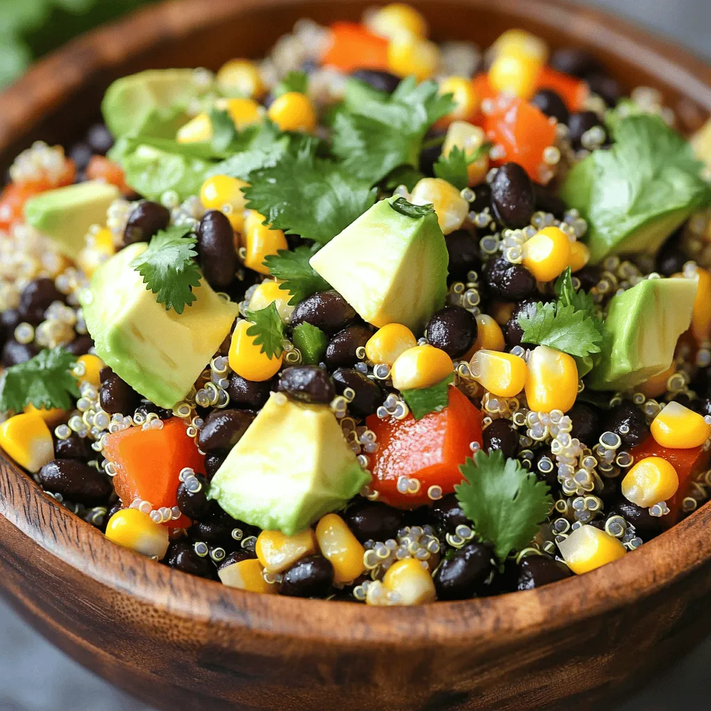 ![Quinoa und schwarze Bohnen Quinoa ist ein nahrhaftes Getreide. Es ist glutenfrei und hat viele Proteine. Für diesen Salat verwenden wir eine Tasse Quinoa. Die Quinoa wird gut abgespült. Das macht sie schmackhaft und leicht verdaulich. Die schwarzen Bohnen bringen Ballaststoffe und einen tollen Geschmack. Eine Dose schwarze Bohnen reicht für den Salat. Gemüse und Kräuter Wir fügen viele frische Zutaten hinzu. Eine rote Paprika gibt Farbe und Süße. Mais bringt einen süßen Crunch. Eine kleine rote Zwiebel sorgt für einen scharfen Geschmack. Eine Avocado macht den Salat cremig. Frischer Koriander bringt frische Aromen. Gewürze und Öl Das Dressing ist einfach, aber lecker. Wir verwenden Limettensaft für die Säure. Olivenöl macht den Salat reichhaltig. Kreuzkümmel gibt einen warmen, erdigen Geschmack. Salz und Pfeffer sind wichtig für den Geschmack. Wenn du es schärfer magst, füge etwas Cayennepfeffer hinzu. Diese Zutaten machen den Schwarzbohnen-Quinoa Salat nahrhaft und köstlich. Die Kombination von Aromen und Texturen ist einfach perfekt. Du kannst die vollständige Zubereitung unter [Full Recipe] nachlesen. Zuerst müssen wir die Quinoa kochen. Nimm einen mittelgroßen Topf und gib die abgespülte Quinoa hinein. Füge zwei Tassen Gemüsebrühe oder Wasser hinzu. Stelle den Herd auf mittlere Hitze und bringe die Mischung zum Kochen. Sobald es kocht, reduziere die Hitze und decke den Topf ab. Lass die Quinoa etwa 15 Minuten köcheln, bis sie fluffig und die Flüssigkeit aufgesogen ist. Danach lockere sie mit einer Gabel auf und lass sie abkühlen. In der Zwischenzeit kannst du das Gemüse und die Bohnen vorbereiten. Nimm eine große Schüssel und füge die schwarzen Bohnen, gewürfelte Paprika, Mais, fein gehackte rote Zwiebel, gewürfelte Avocado und den frischen Koriander hinzu. Vermenge die Zutaten gut miteinander. Diese Mischung gibt dem Salat Farbe und Geschmack. Jetzt kommt das Dressing. In einer separaten kleinen Schüssel mische den Limettensaft, das Olivenöl, den Kreuzkümmel, Salz und schwarzen Pfeffer. Wenn du es schärfer magst, füge etwas Cayennepfeffer hinzu. Verquirle alles gut, bis es gut vermischt ist. Wenn die Quinoa abgekühlt ist, füge sie zur Schüssel mit der Bohnen- und Gemüse-Mischung hinzu. Träufle das Dressing gleichmäßig über den Salat und vermenge alles vorsichtig. Schmecke den Salat ab und füge nach Belieben mehr Salz, Pfeffer oder Limettensaft hinzu. Lass ihn mindestens 15 Minuten ruhen, damit sich die Aromen gut verbinden. Für die vollständige Zubereitung sieh dir das Full Recipe an. - Abschmecken und nachwürzen: Der Schlüssel zu einem großartigen Salat liegt im Geschmack. Probieren Sie den Salat vor dem Servieren. Fühlen Sie sich frei, mehr Salz oder Pfeffer hinzuzufügen. Ein Spritzer Limettensaft kann die Aromen zum Leben erwecken. - Aromen gut zur Geltung bringen: Lassen Sie den Salat mindestens 15 Minuten ruhen. Dies hilft den Aromen, sich zu verbinden. Gerichte schmecken oft besser, wenn sie etwas Zeit haben. Nutzen Sie frische Kräuter wie Koriander, um den Geschmack zu verstärken. - Optimale Präsentation: Servieren Sie den Salat in einer großen Schüssel. Ein ansprechendes Platt macht das Gericht einladend. Garnieren Sie mit zusätzlichen Limettenscheiben und frischem Koriander. Dies sieht nicht nur gut aus, sondern gibt auch extra Geschmack. - Vorbereitungen für Gäste: Bereiten Sie den Salat im Voraus vor. Sie können ihn bis zu einem Tag vorher machen. Lagern Sie ihn im Kühlschrank, damit er frisch bleibt. Ein wenig Zeit in der Küche spart Ihnen Stress, wenn die Gäste kommen. {{image_4}} Sie können diesem Salat ganz einfach neue Geschmäcker hinzufügen. Feta-Käse gibt eine cremige Note. Oliven bringen einen salzigen Biss. Für eine vegane Variante lassen Sie den Feta einfach weg. Stattdessen können Sie Nüsse oder Samen verwenden. Diese geben Textur und gesunde Fette. Glutenfreie Optionen sind leicht möglich. Quinoa ist von Natur aus glutenfrei. So können Sie den Salat genießen, ohne sich Sorgen zu machen. Die Zutaten können sich mit den Jahreszeiten ändern. Im Frühling und Sommer sind frische Tomaten und Gurken toll. Diese geben dem Salat mehr Saftigkeit und Frische. Auch Zucchini oder Radieschen passen super in den Salat. Im Herbst können Sie Kürbis oder Süßkartoffeln verwenden. Diese machen den Salat herzhaft und warm. Rote Bete ist eine weitere großartige Option für eine tiefere Farbe und süßeren Geschmack. Für die besten Ergebnisse probieren Sie verschiedene Kombinationen aus. So bleibt der Salat spannend und lecker. Der schwarze Bohnen Quinoa Salat bleibt frisch, wenn Sie ihn gut lagern. Im Kühlschrank hält er sich bis zu drei Tage. Verwenden Sie einen luftdichten Behälter, um die Frische zu bewahren. Achten Sie darauf, den Salat nicht zu lange stehen zu lassen. So bleibt der Geschmack und die Textur optimal. Haben Sie Reste übrig? Nutzen Sie sie kreativ! Sie können neue Gerichte kreieren, indem Sie den Salat in Wraps oder Tacos füllen. Auch als Füllung für Omeletts ist er lecker. Wenn Sie den Salat wiederverwenden, denken Sie daran, ihn frisch aufzuwerten. Fügen Sie etwas frisches Gemüse oder eine neue Vinaigrette hinzu. So bleibt das Gericht spannend und schmackhaft. Der Salat bleibt im Kühlschrank etwa drei bis vier Tage frisch. Sie sollten ihn in einem luftdichten Behälter aufbewahren. So bleibt der Geschmack erhalten und er trocknet nicht aus. Wenn der Salat lange steht, kann die Avocado etwas braun werden. Das ist normal, aber der Geschmack ändert sich nicht. Ja, Sie können Quinoa im Voraus kochen. Kochen Sie die Quinoa einfach nach den Anweisungen. Lassen Sie sie dann abkühlen und bewahren Sie sie in einem luftdichten Behälter im Kühlschrank auf. So bleibt sie bis zu fünf Tage frisch. Wenn Sie bereit sind, den Salat zu machen, fügen Sie die gekochte Quinoa einfach zu den anderen Zutaten hinzu. Ja, dieser Salat ist sehr gesund! Schwarze Bohnen sind reich an