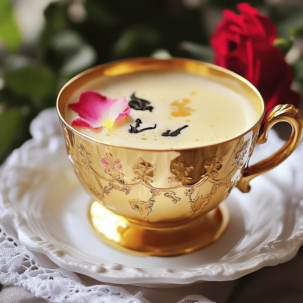 Um einen Vanille-Rosen-Tee-Latte zuzubereiten, brauchst du einige einfache Zutaten. Du benötigst 2 Tassen Wasser und 2 Teebeutel schwarzen Tee. Für den besonderen Geschmack kommen 1 Teelöffel getrocknete Rosenblätter und 1 Teelöffel Vanilleextrakt dazu. Außerdem brauchst du 1 Tasse Milch oder eine pflanzliche Alternative. Süßungsmittel wie 1-2 Teelöffel Honig oder Ahornsirup sind ebenfalls wichtig. Frische Rosenblätter können die Dekoration sein.